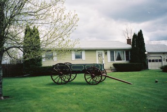 自宅の庭には製作したカートがディスプレィ こちらはミニカート、お気に入りのシュタイフと
